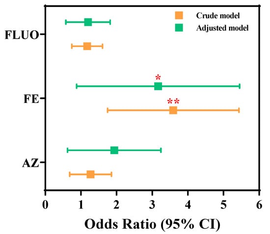 Conclusions: This study provides the first evidence of widespread SF exposure in a South Chinese population and reveals significant associations with oxidative stress and AZ exposure with liver function biomarkers (i.e., DBIL), with exploratory analyses suggesting a potential mediating role of oxidative stress in this relationship. However, the cross-sectional design precludes causal inference, and the modest effect sizes warrant cautious interpretation. These findings highlight the need for further longitudinal research to confirm the hepatotoxicity of SFs in humans.