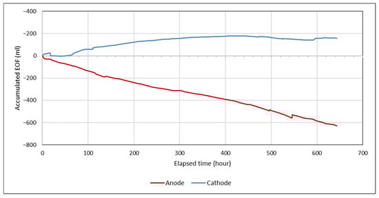 Accumulated EOF in the electrokinetic test with the sediment specimen.