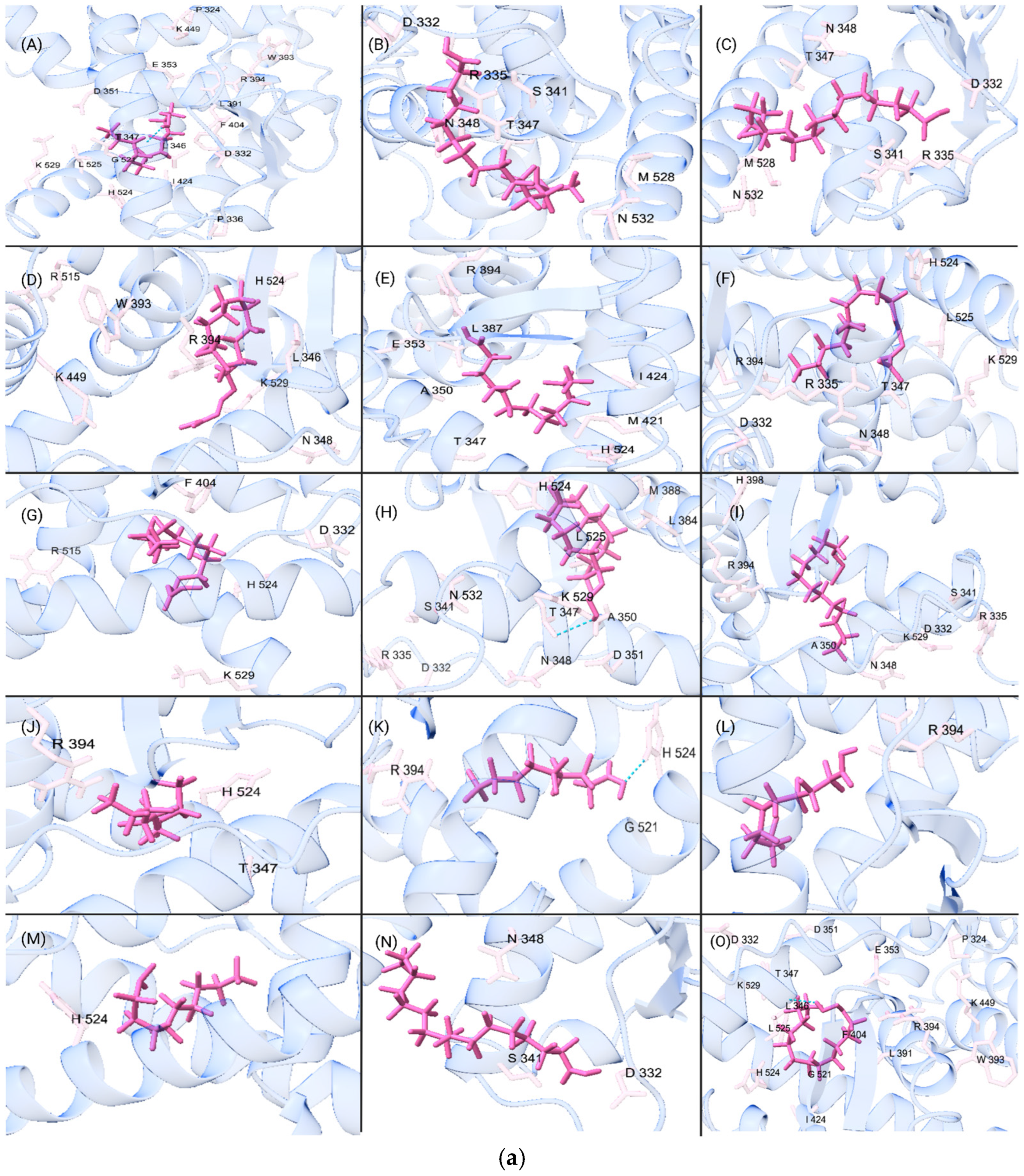 - Eberhardt, J.; Santos-Martins, D.; Tillack, A.F.; Forli, S. AutoDock Vina 1.2.0: New Docking Methods, Expanded Force Field, and Python Bindings. J. Chem. Inf. Model. 2021, 61, 3891–3898. [Google Scholar] [CrossRef] [PubMed]