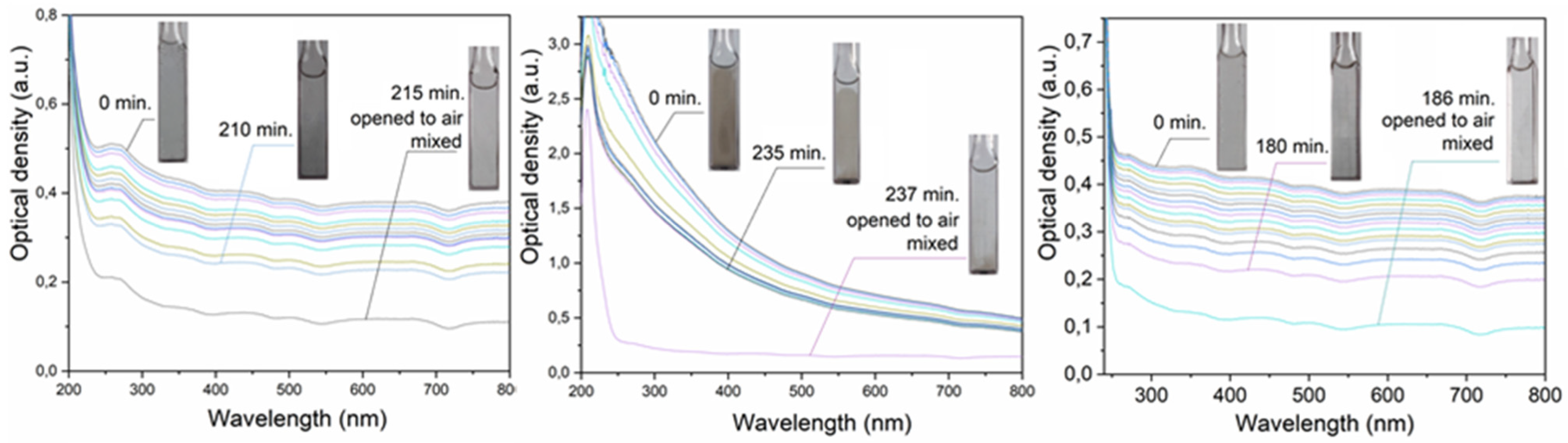 3.1. Formation and Characteristics of the Metal Dispersions in Water