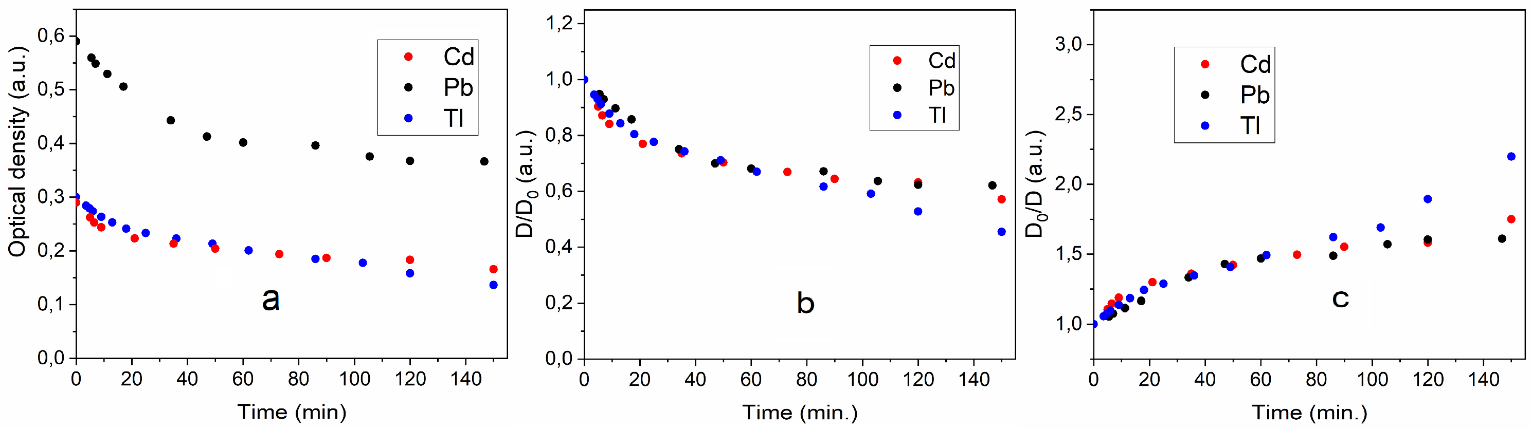- Bykov, G.L.; Bludenko, A.V.; Ponomarev, A.V.; Ershov, B.G. Dynamics of metal formation upon radiation-chemical reduction of Cd2+ ions in aqueous solutions: Morphology of cadmium precipitate. Radiat. Phys. Chem. 2024, 225, 112115. [Google Scholar] [CrossRef]