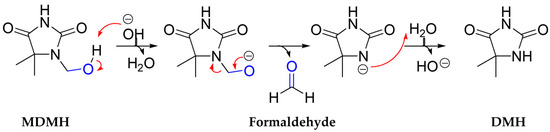 Chemical conversion of MDMH to DMH and formaldehyde.