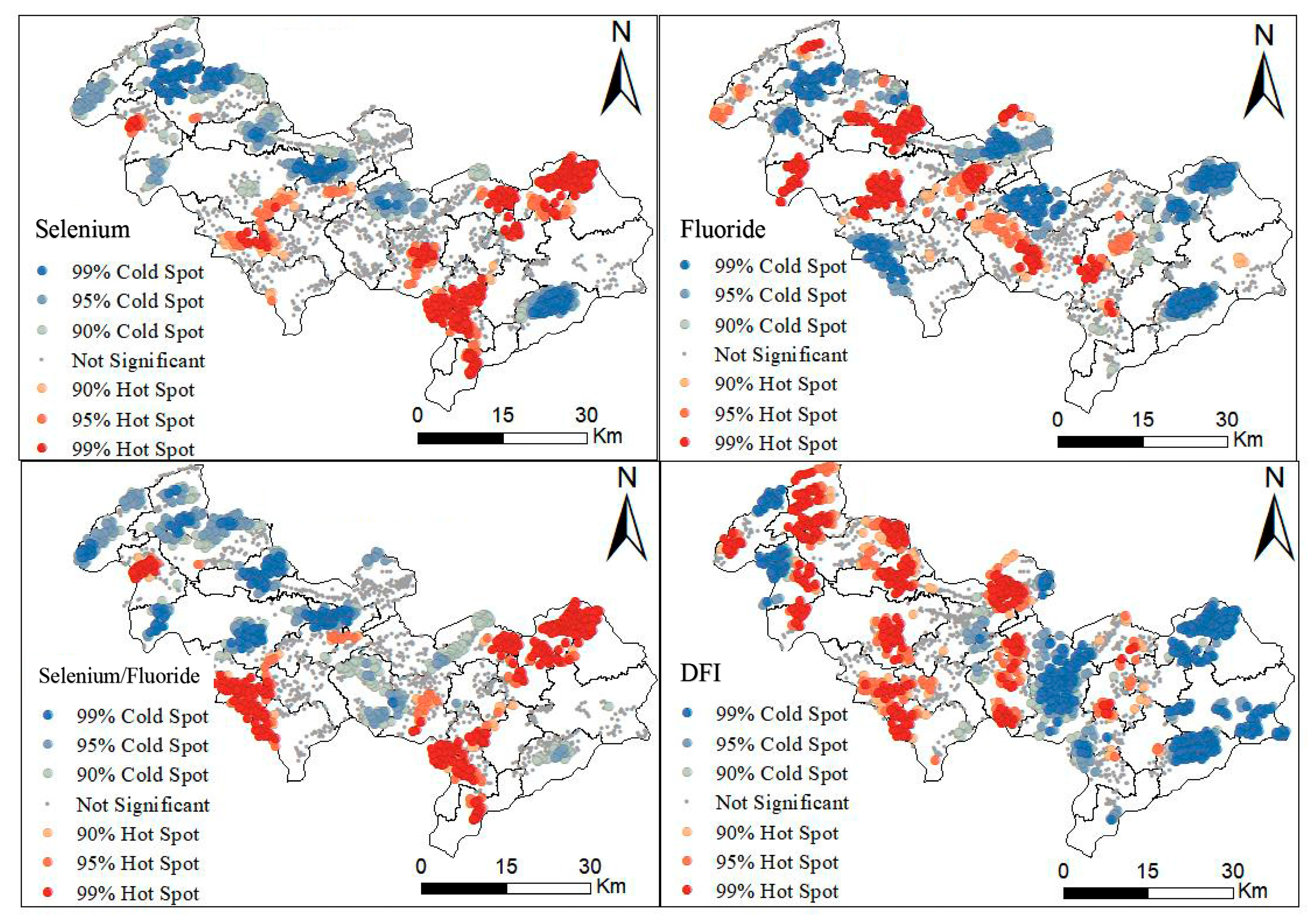 3.2. Correlations and Spatial Association of Selenium or Fluoride with DFI