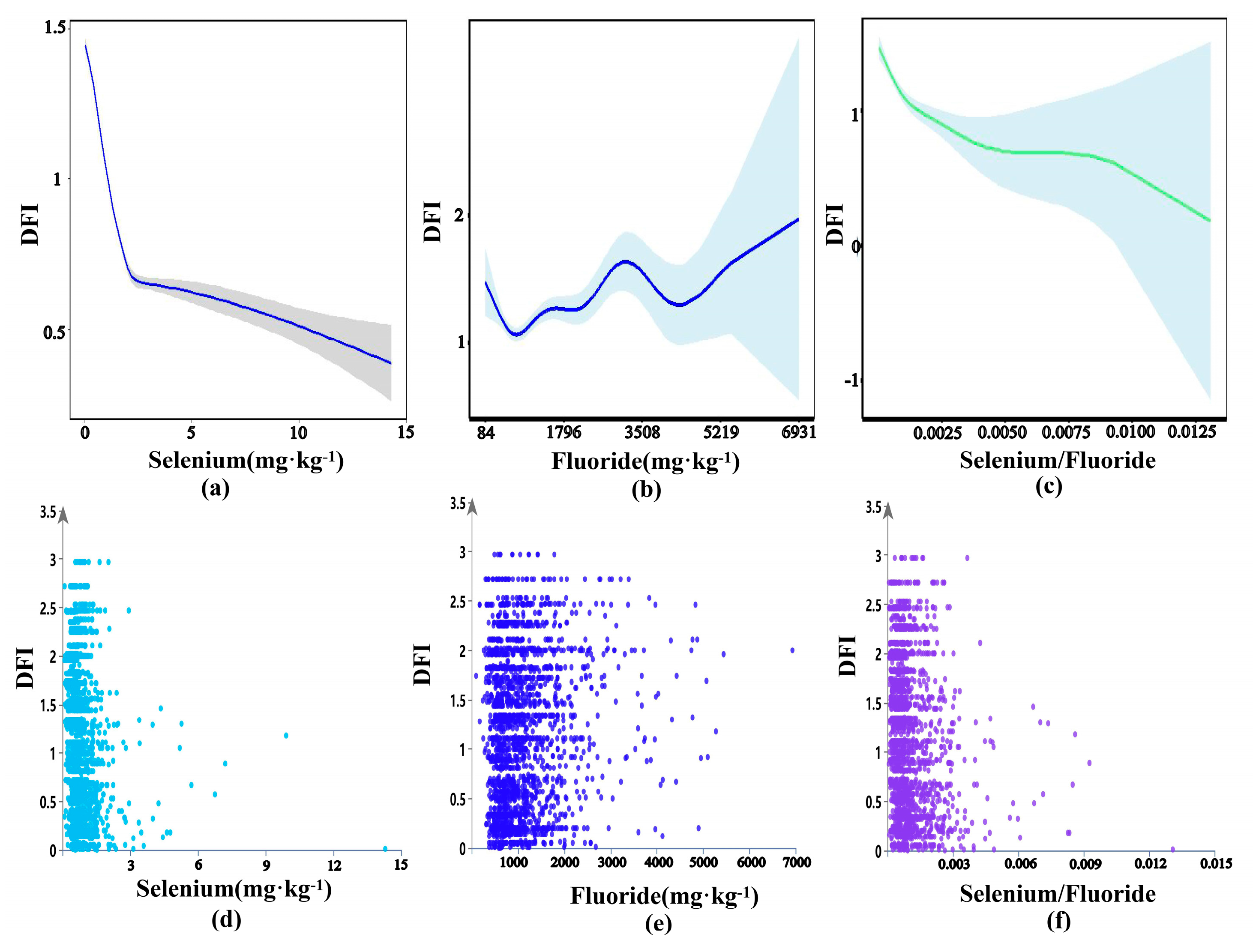 3.3. The Generalized Additive Model (GAM) of Soil Selenium Content, Fluoride Content and Selenium/Fluoride with the Dean’s Dental Fluorosis Index