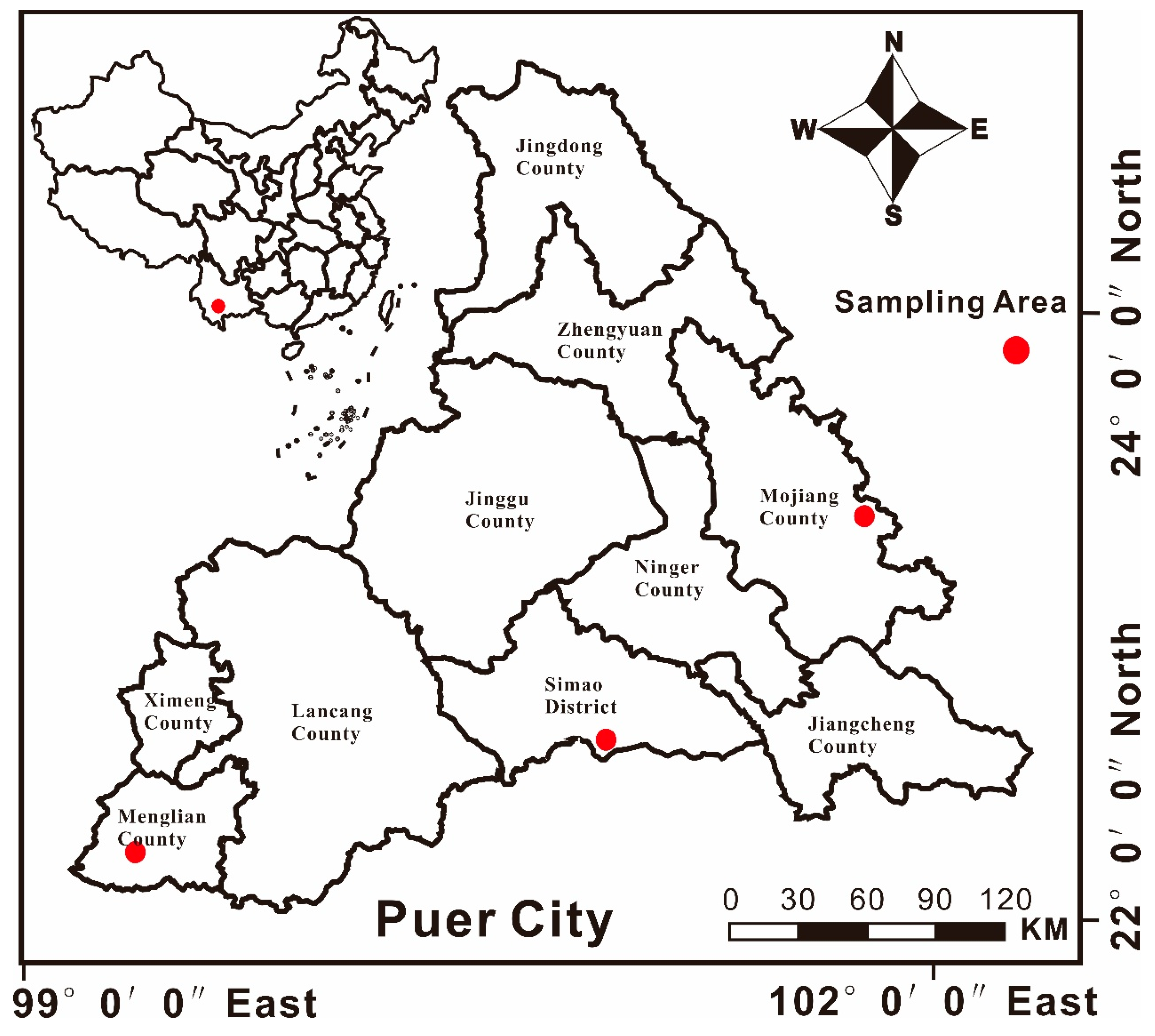 | Pu’er City | Min–Max | 3.41–30.65 | 0.02–0.17 | 0.03–0.17 | 9.89–193 | 65.1–157 | 1.32–60.2 | 14.8–118 |