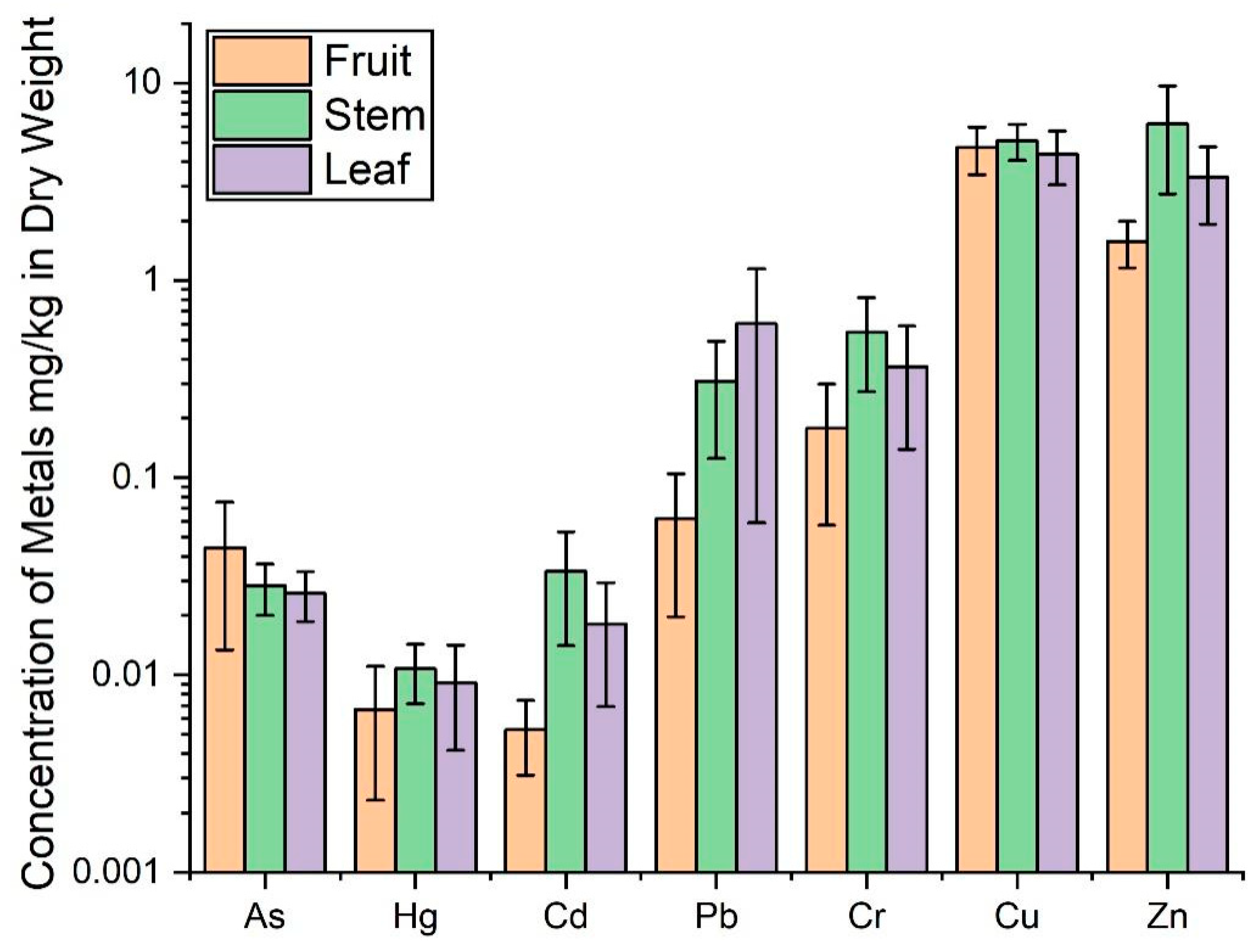 | Fruit | As | Hg | Cd | Pb | Cr | Cu | Zn |