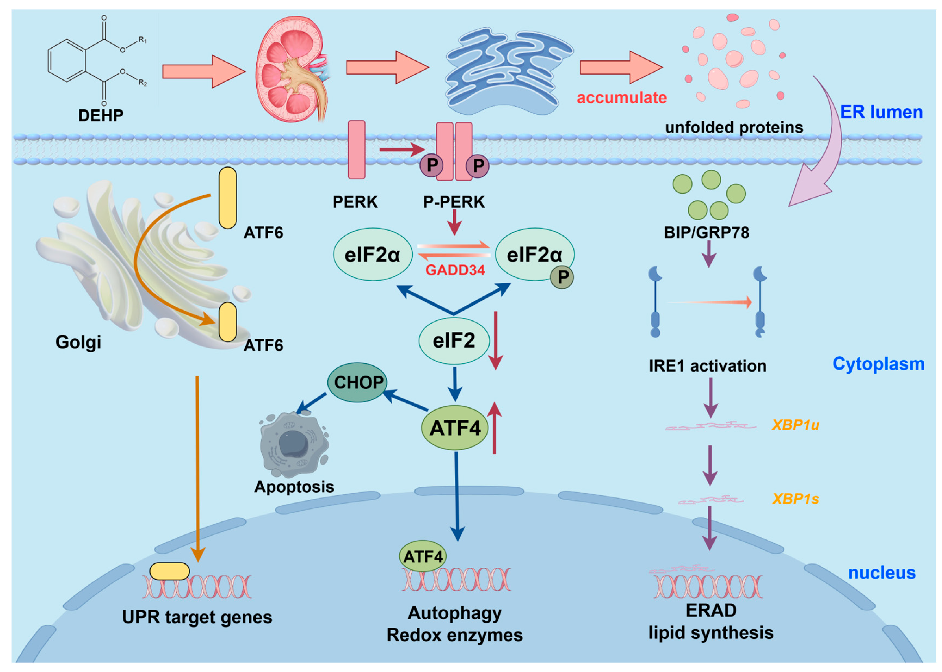 - Singh, J.; Jangra, A.; Kumar, D. Recent advances in toxicological research of di-(2-ethylhexyl)-phthalate: Focus on endoplasmic reticulum stress pathway. Chemosphere 2024, 356, 141922. [Google Scholar] [CrossRef] [PubMed]