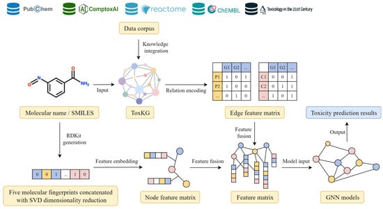 The toxicity prediction model constructed in this study integrates both molecular structural information and biological mechanism information. Accordingly, features were extracted from molecular structures and the toxicological knowledge graph, and then combined as input for the graph neural network.