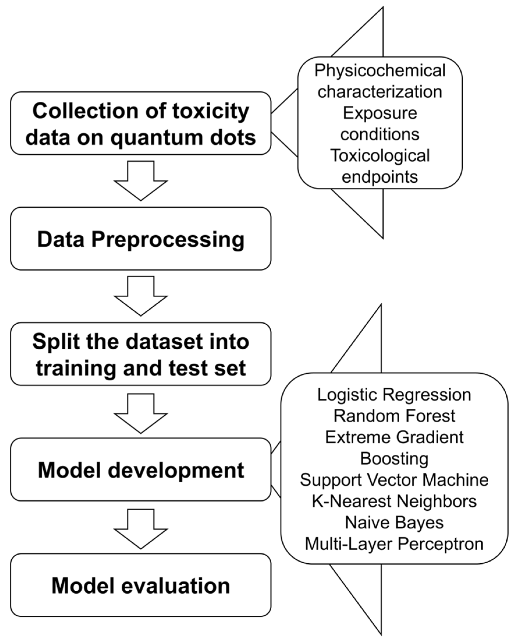 - Chen, S.; Wu, T. Progression and prospects of machine learning techniques in nanotoxicology: Riding the AI-driven wave. Toxicology Mechanisms and Methods 2025, 1–20. [Google Scholar] [CrossRef] [PubMed]