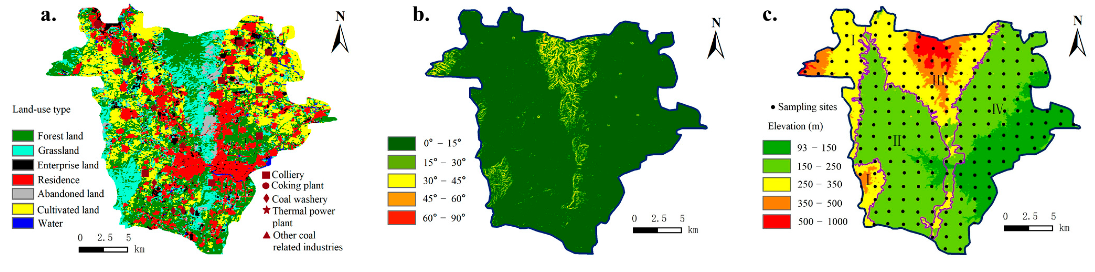 - Dong, Y.; Lu, H.; Lin, H. Comprehensive Study on the Spatial Distribution of Heavy Metals and Their Environmental Risks in High-Sulfur Coal Gangue Dumps in China. J. Environ. Sci. 2024, 136, 486–497. [Google Scholar] [CrossRef] [PubMed]