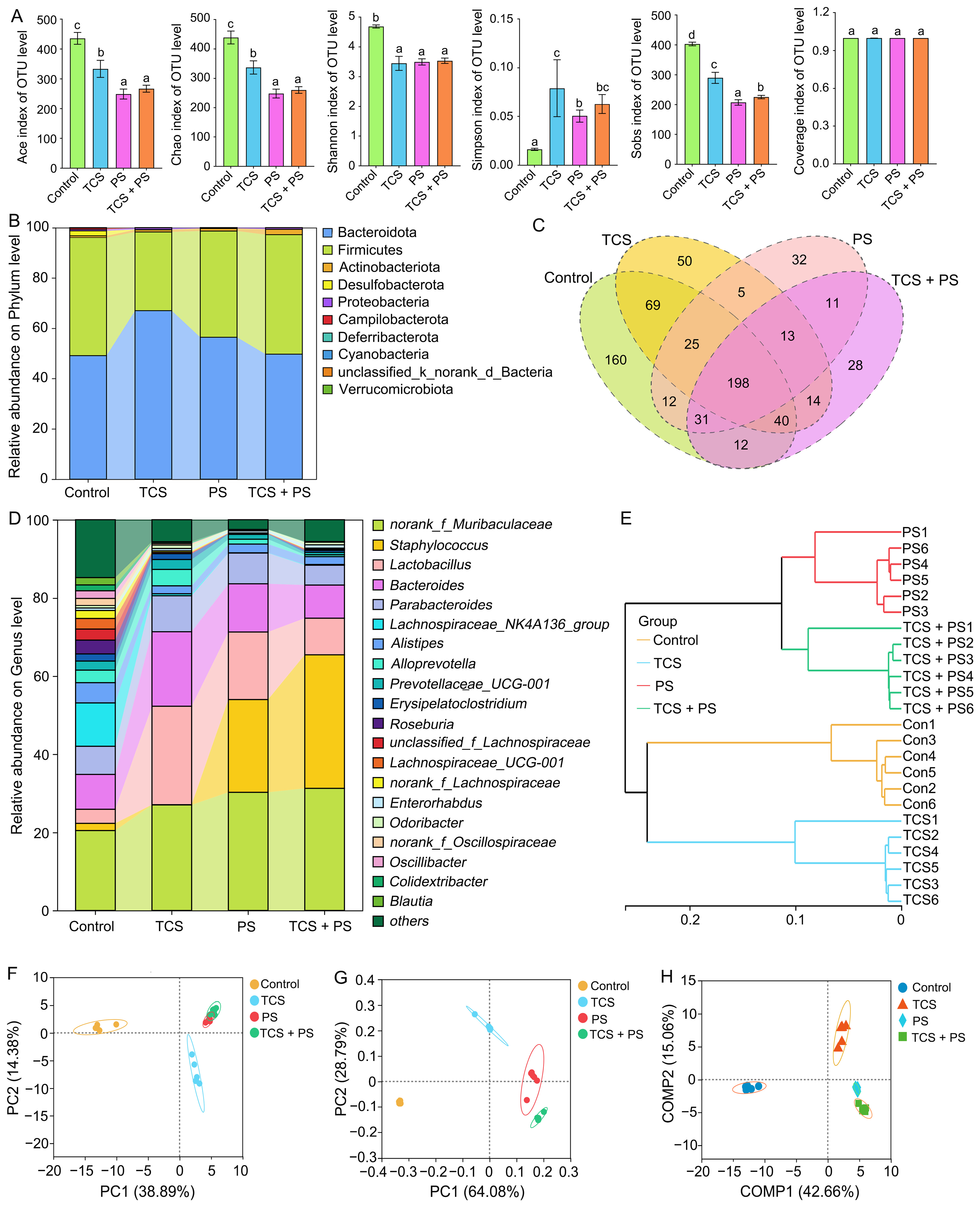 3.5. The Combined Effect of TCS and PS Aggravated Gut Dysbiosis
