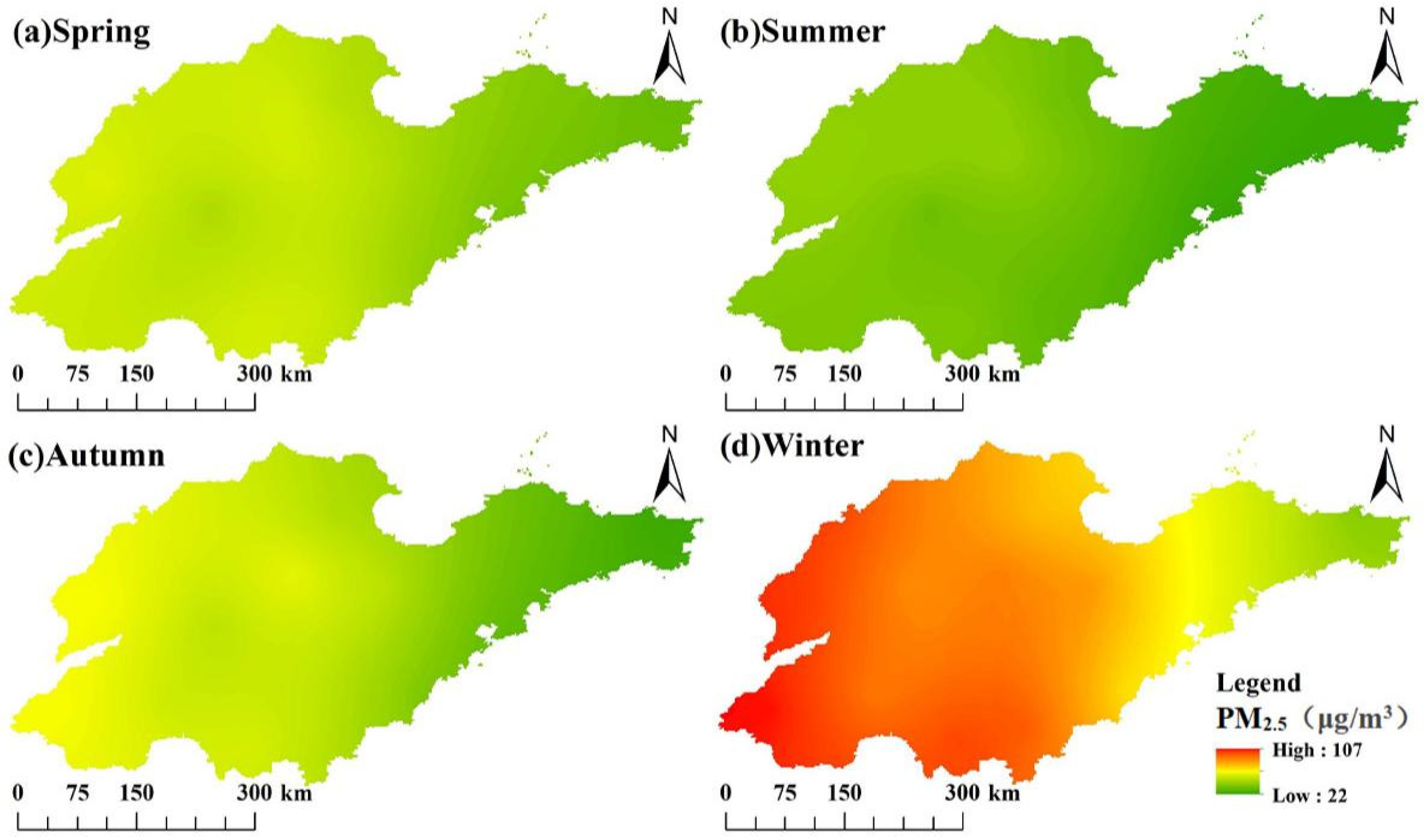 Figure 5. Seasonal spatial distribution of PM2.5 concentrations.