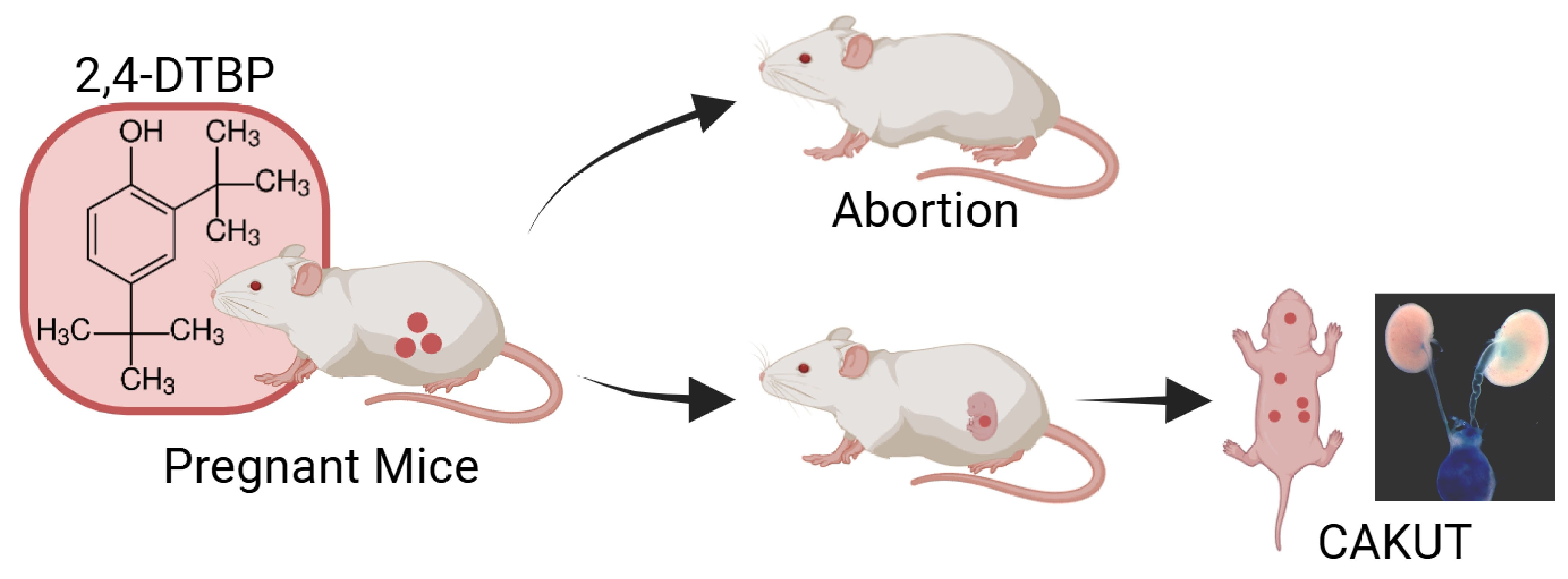 Jiang Y, Ye N, Yu M, Ju H, Wang C, Wang H, Liu J, Shen Q, Xu H. Maternal Exposure to 2,4-Di-tert-butylphenol During Pregnancy in a Mouse Model Leads to Abnormal Development of the Urinary System in Offspring. Toxics. 2025; 13(11):991. https://doi.org/10.3390/toxics13110991