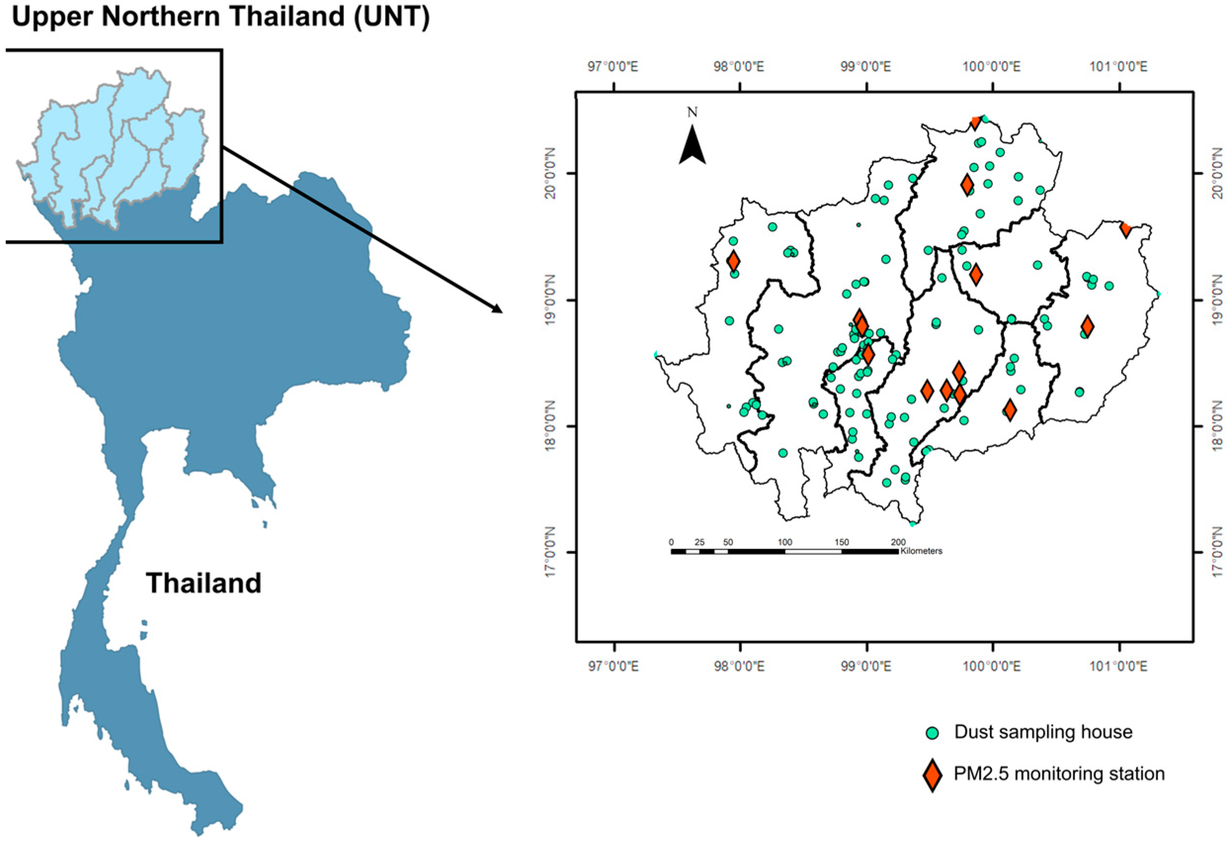 - Somsunun, K.; Prapamontol, T.; Kuanpan, T.; Santijitpakdee, T.; Kohsuwan, K.; Jeytawan, N.; Thongjan, N. Health Risk Assessment of Heavy Metals in Indoor Household Dust in Urban and Rural Areas of Chiang Mai and Lamphun Provinces, Thailand. Toxics 2023, 11, 1018. [Google Scholar] [CrossRef]