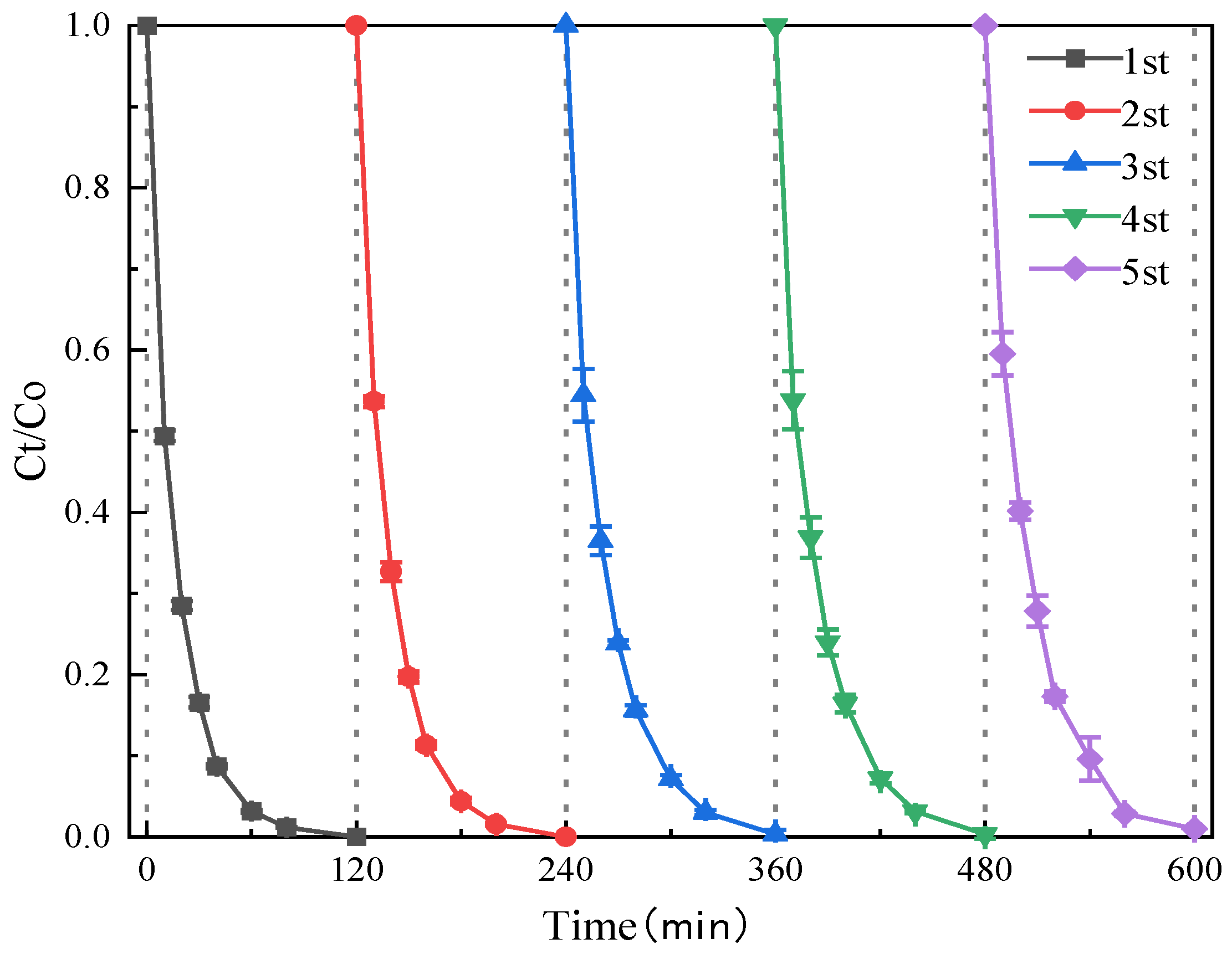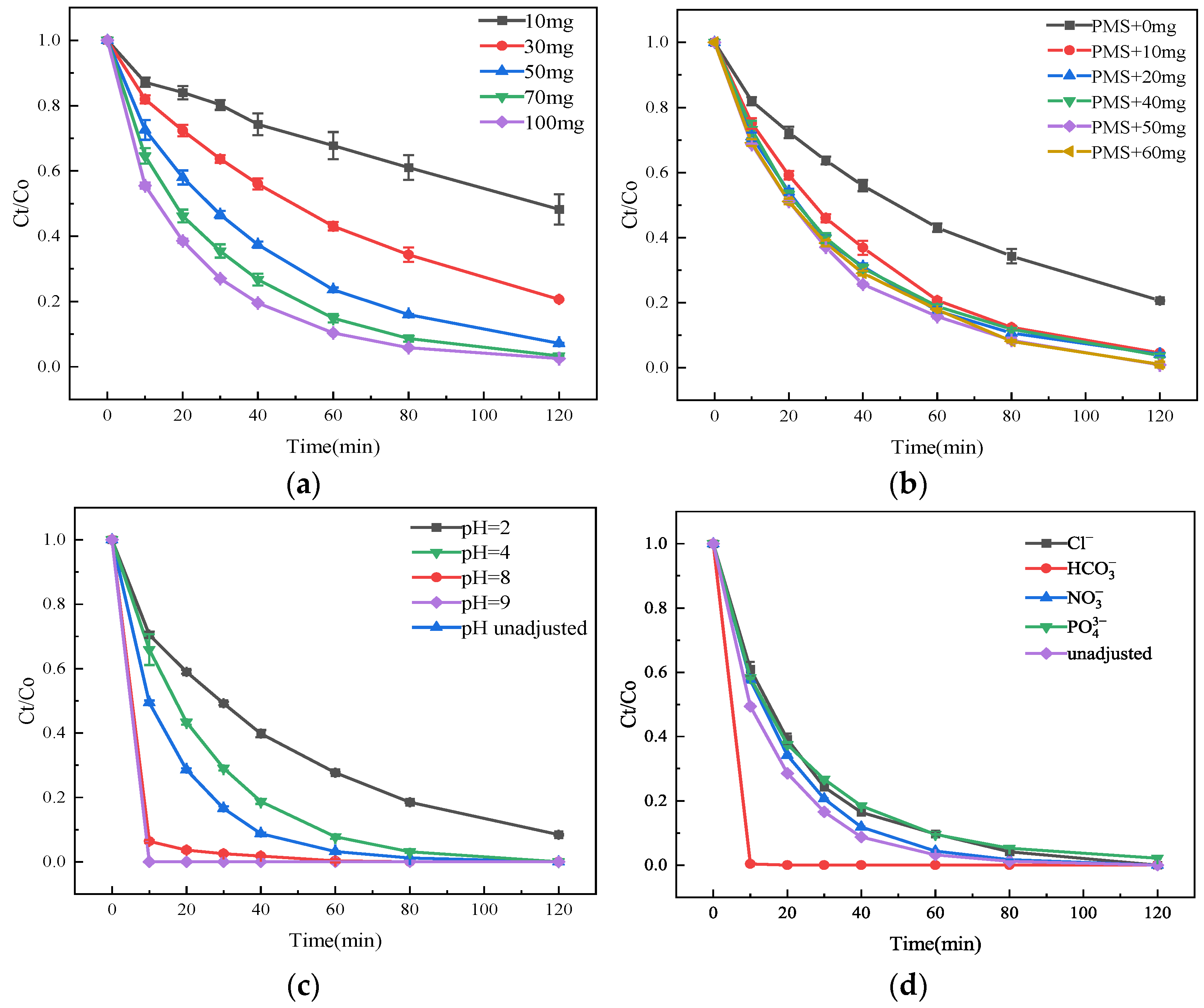 - Liu, J.; Yang, R.; Jiang, Q.; Chen, S.; Fang, M.; Wang, S.; Xu, Z. Sulfamethazine degradation via PMS activated by Co-Cu catalyst supported on modified geopolymer. J. Environ. Chem. Eng. 2025, 13, 118825. [Google Scholar] [CrossRef]