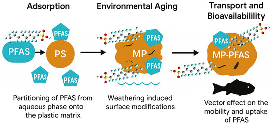 The ultimate environmental consequence of this complex adsorption process is the vector effect, wherein MPs alter the transport and bioavailability of PFAS. The formation of the MP-PFAS complex can fundamentally change the mobility of both contaminants. Ding et al. [2] reported that while PFAS are typically dissolved and mobile, their association with dense MPs could lead to enhanced deposition and accumulation in sediments. Conversely, sorption to buoyant, small MPs could facilitate the long-range transport of PFAS to pristine environments. Most critically, this association dramatically enhances bioavailability and trophic transfer. Filter-feeding and sediment-ingesting organisms constantly consume MPs. When these particles are loaded with PFAS, they act as a Trojan horse, delivering a concentrated dose of contaminants directly into the organism’s digestive system. The unique conditions of the gut, including surfactants, digestive enzymes, and a sharp pH gradient, can promote the desorption of PFAS from the MP surface, leading to internal exposure levels far exceeding those from waterborne contamination alone. This mechanism has been demonstrated to increase the assimilation efficiency of persistent pollutants in aquatic food webs [21], confirming that the MP-PFAS nexus is not merely a chemical phenomenon but a profound biological threat.