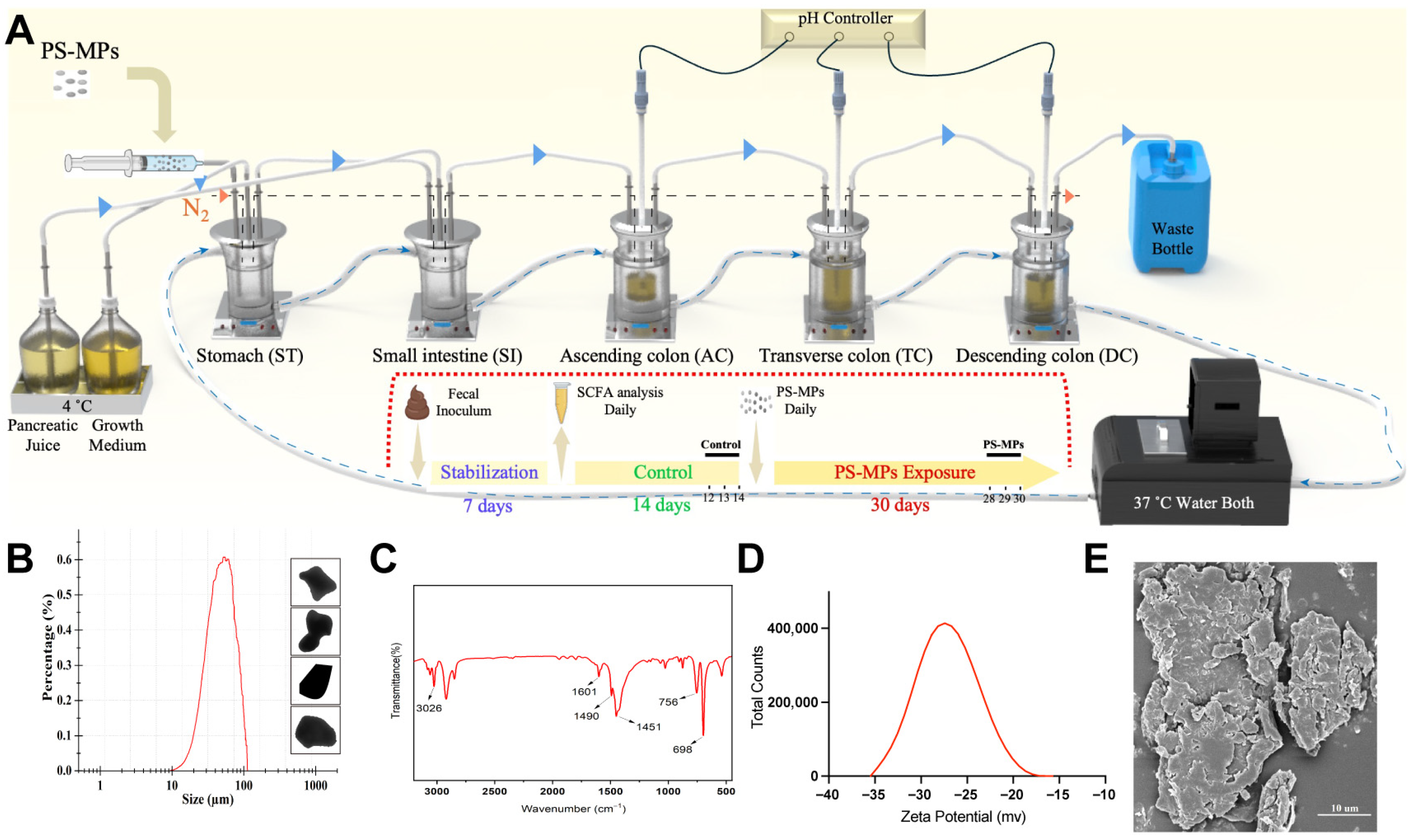 2.2. Artificial Production and Characterization of PS-MPs