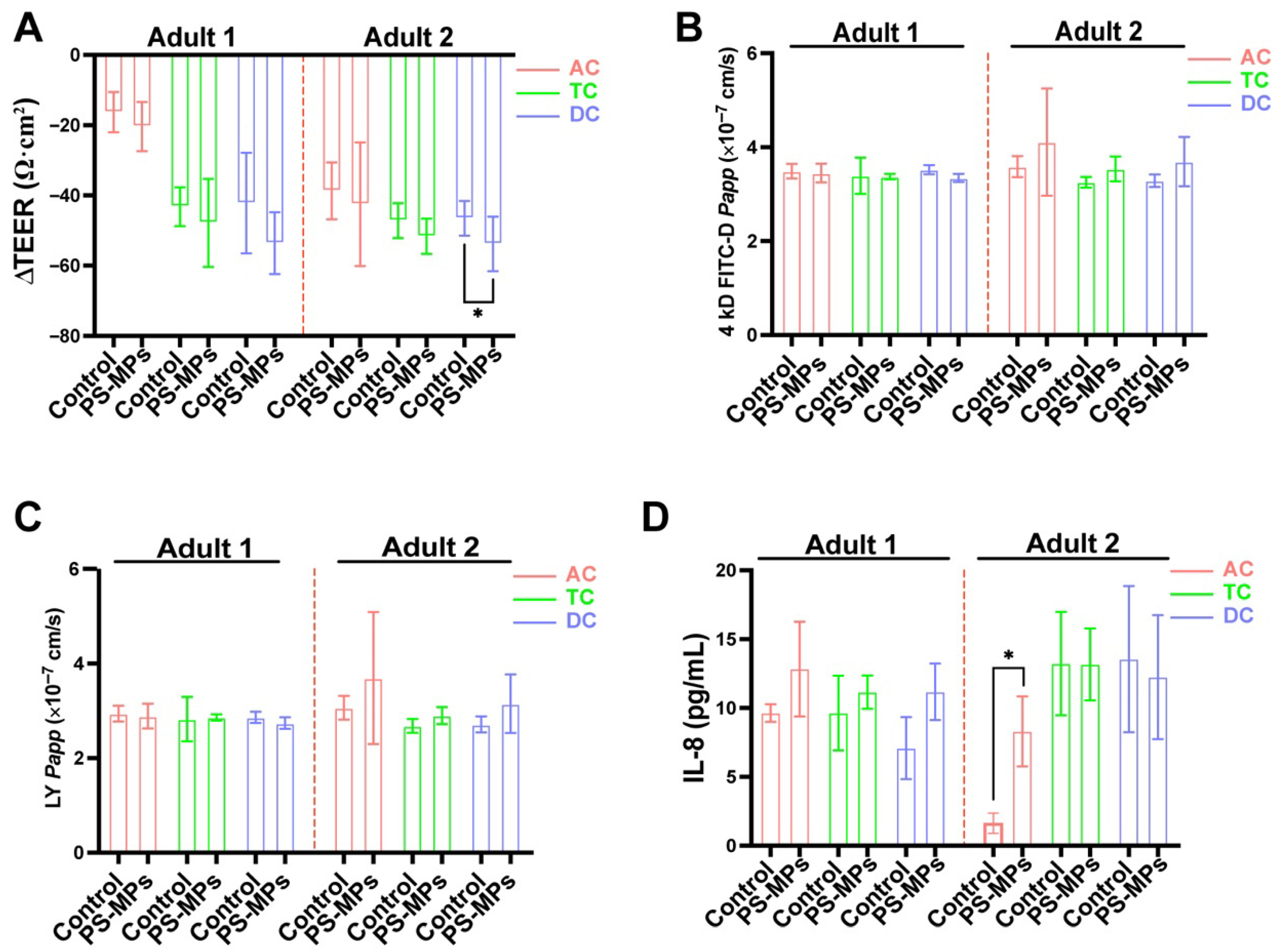 2.13. Transepithelial Electrical Resistance (TEER) Analysis