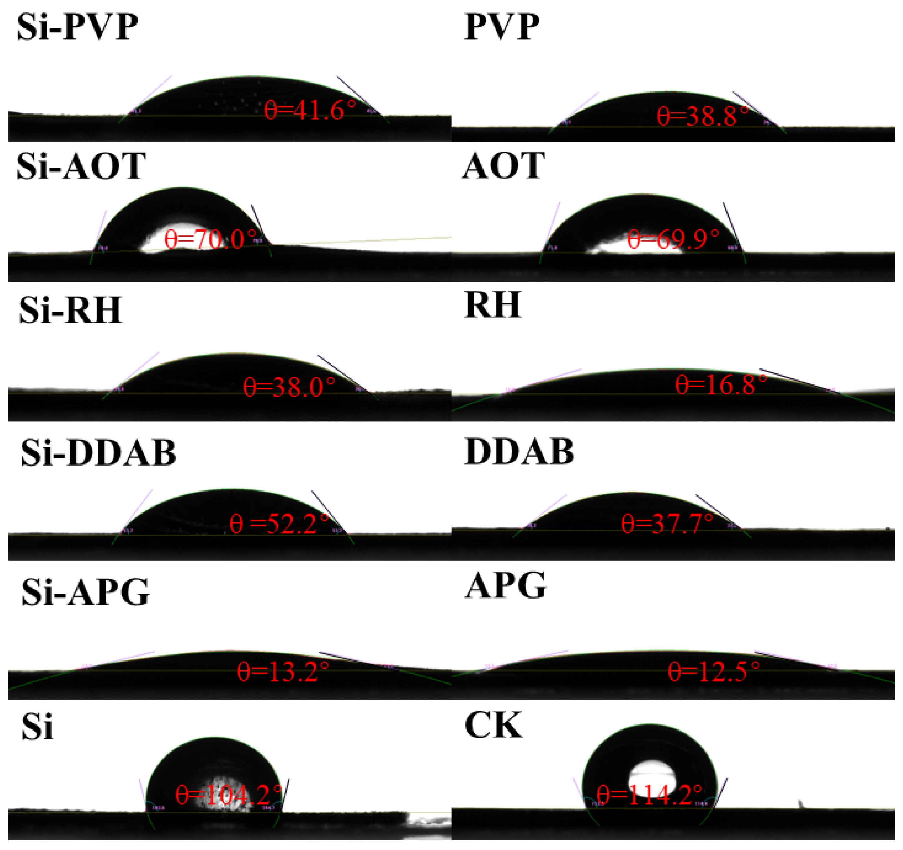 3.1. Effect of Surfactants on Wettability of Nano-Silica