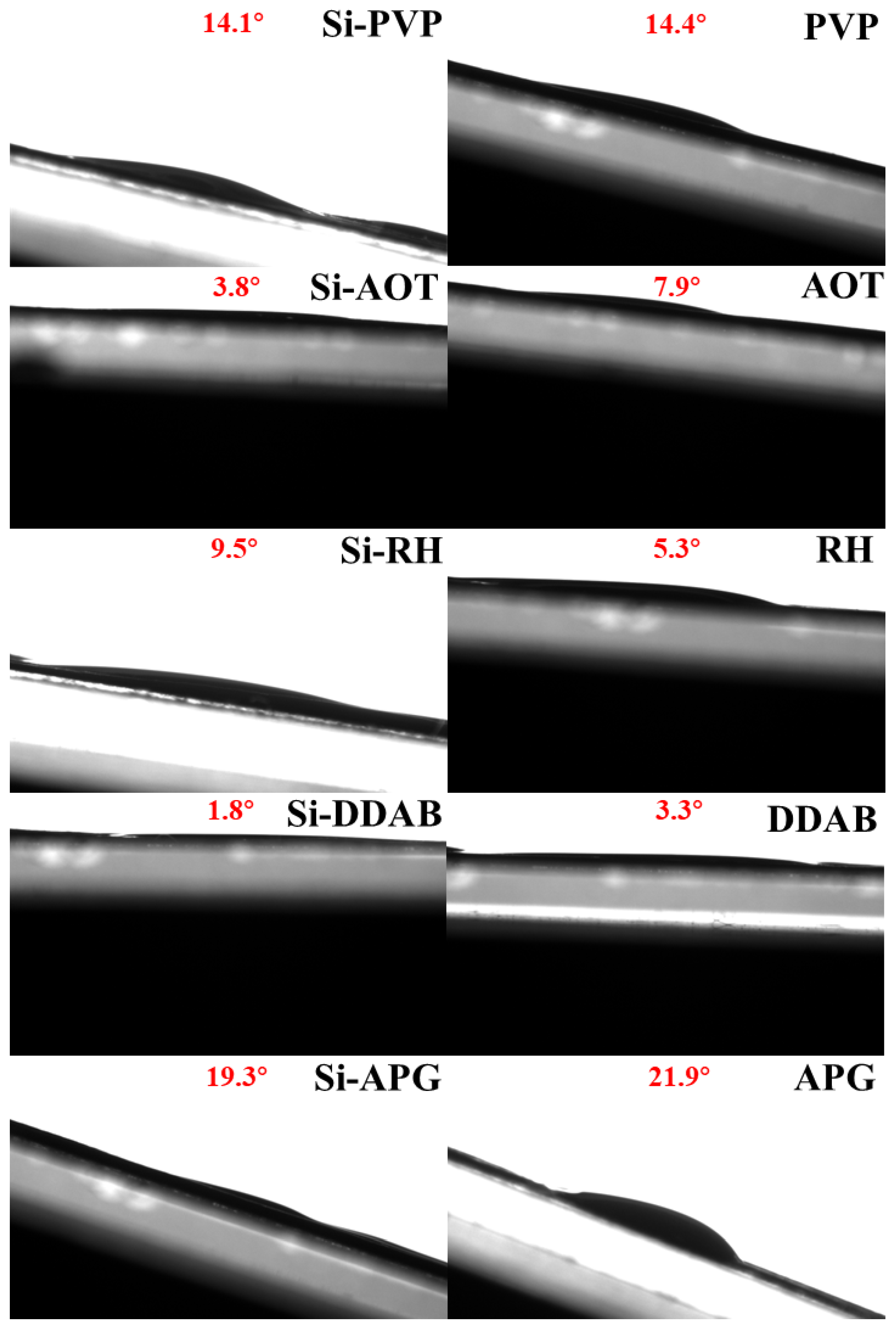 3.2. Surfactants Exhibit a Synergistic Effect in Increasing the Rolling Angle