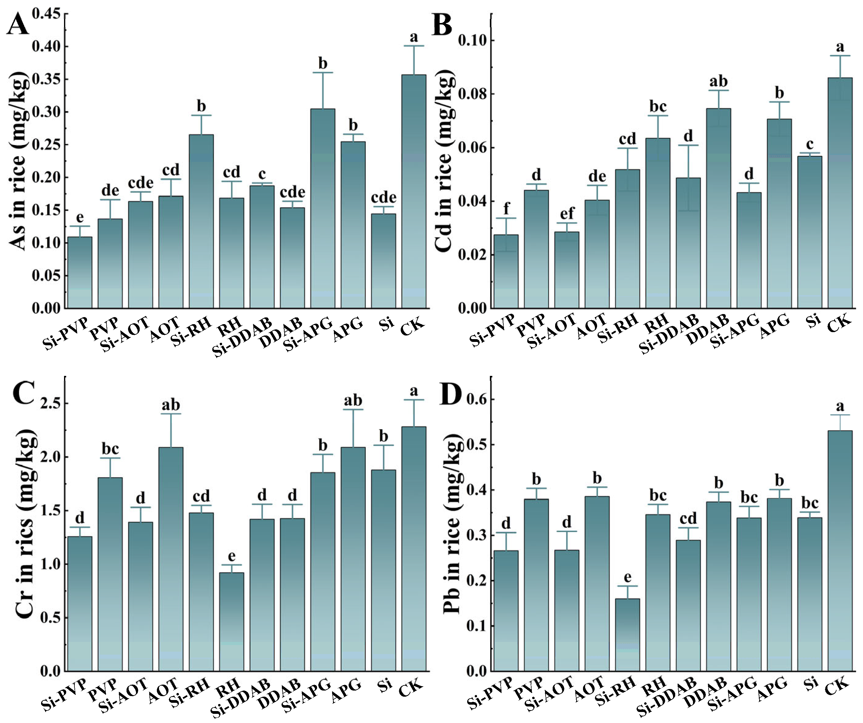 4.2. Facilitation Mechanism of Surfactants for Heavy Metal Reduction in Rice by Nano-Silica