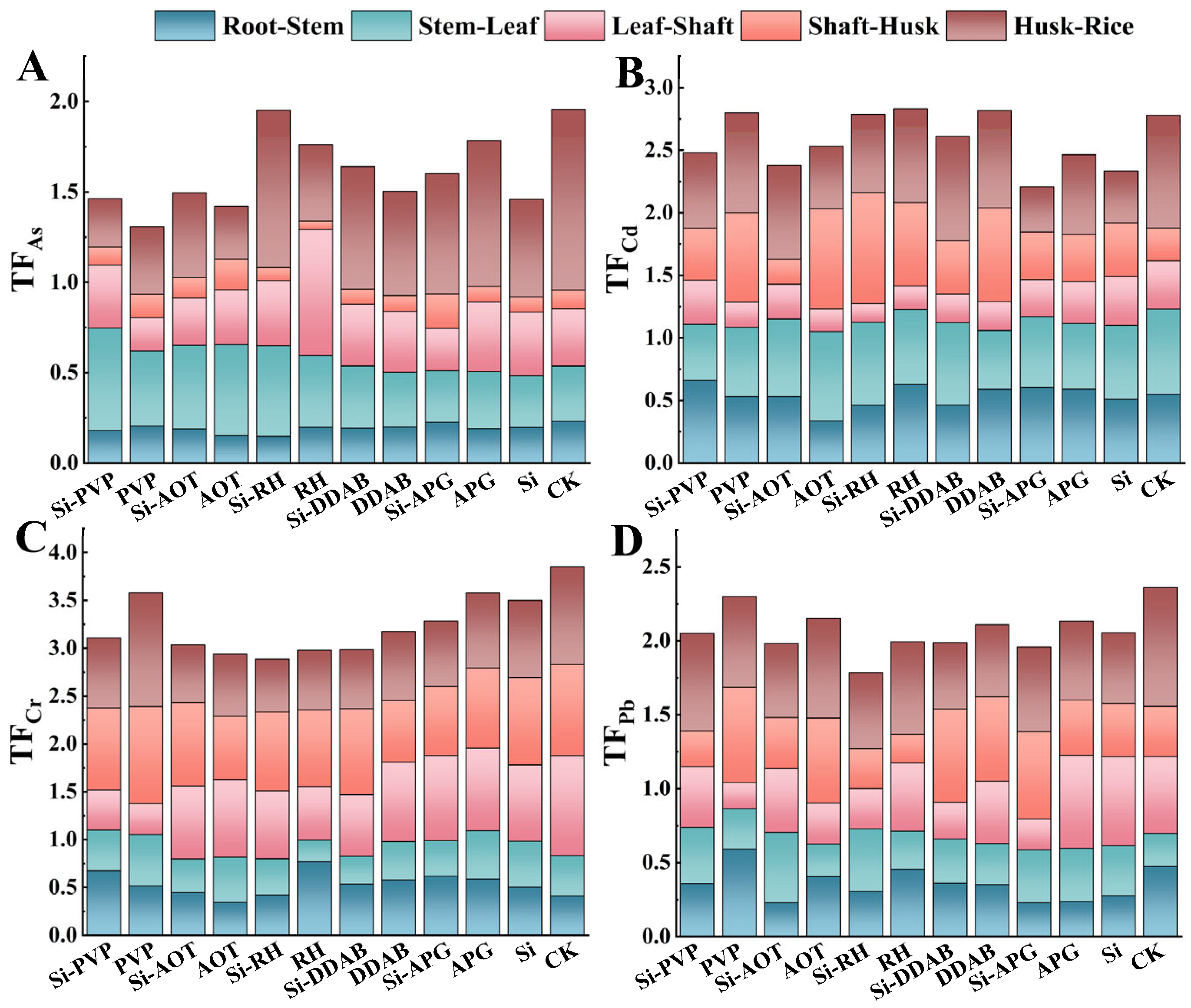 - Wang, H.C.; Liu, M.S.; Zhang, Y.; Jiang, Q.; Wang, Q.P.; Gu, Y.Q.; Song, X.P.; Li, Y.; Ye, Y.X.; Wang, F.B.; et al. Foliar spraying of Zn/Si affects Cd accumulation in paddy grains by regulating the remobilization and transport of Cd in vegetative organs. Plant Physiol. Biochem. 2024, 207, 108305. [Google Scholar] [CrossRef] [PubMed]