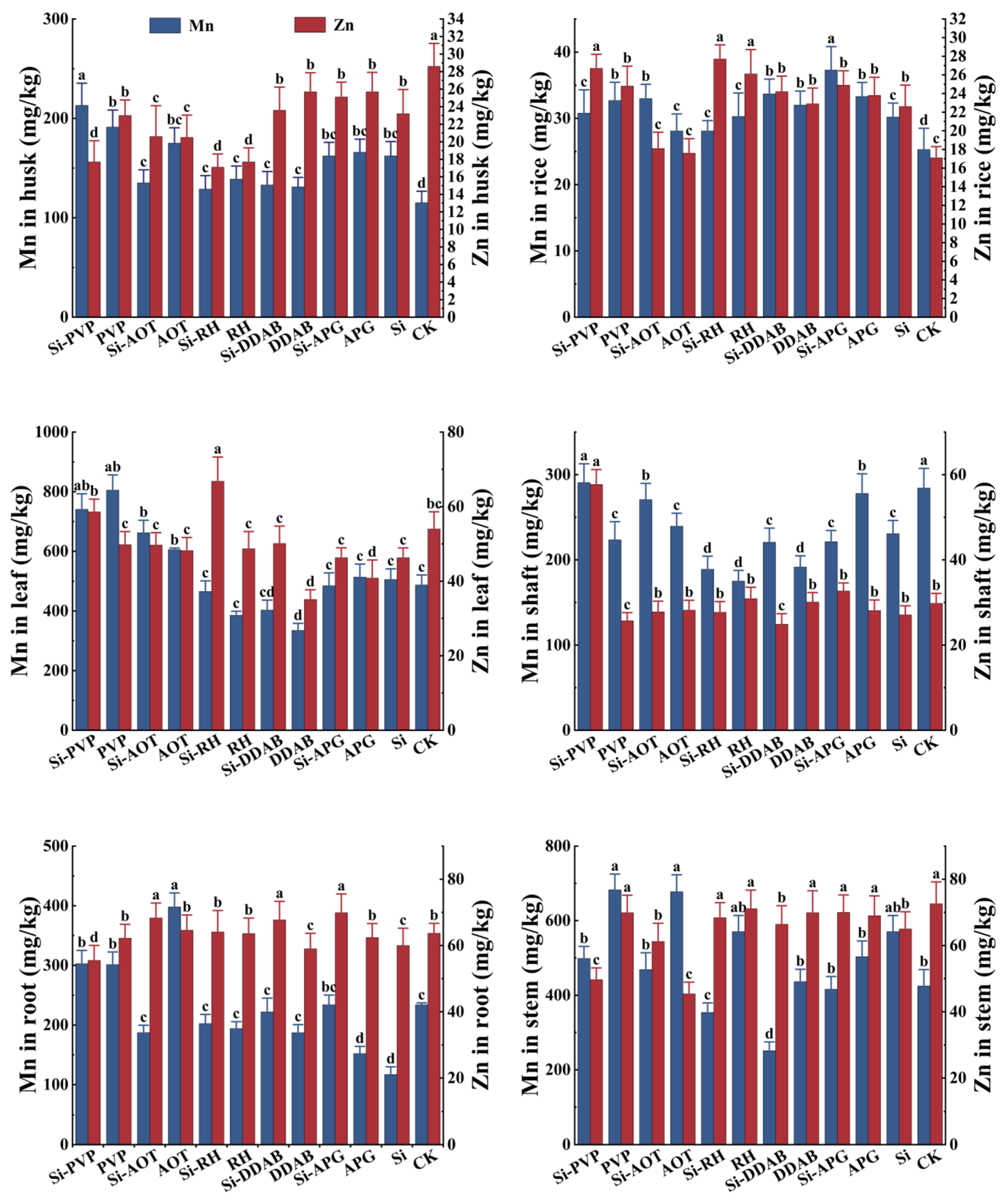3.5. Promotional Effects of Different Treatments on the Accumulation of (Mn, Zn)