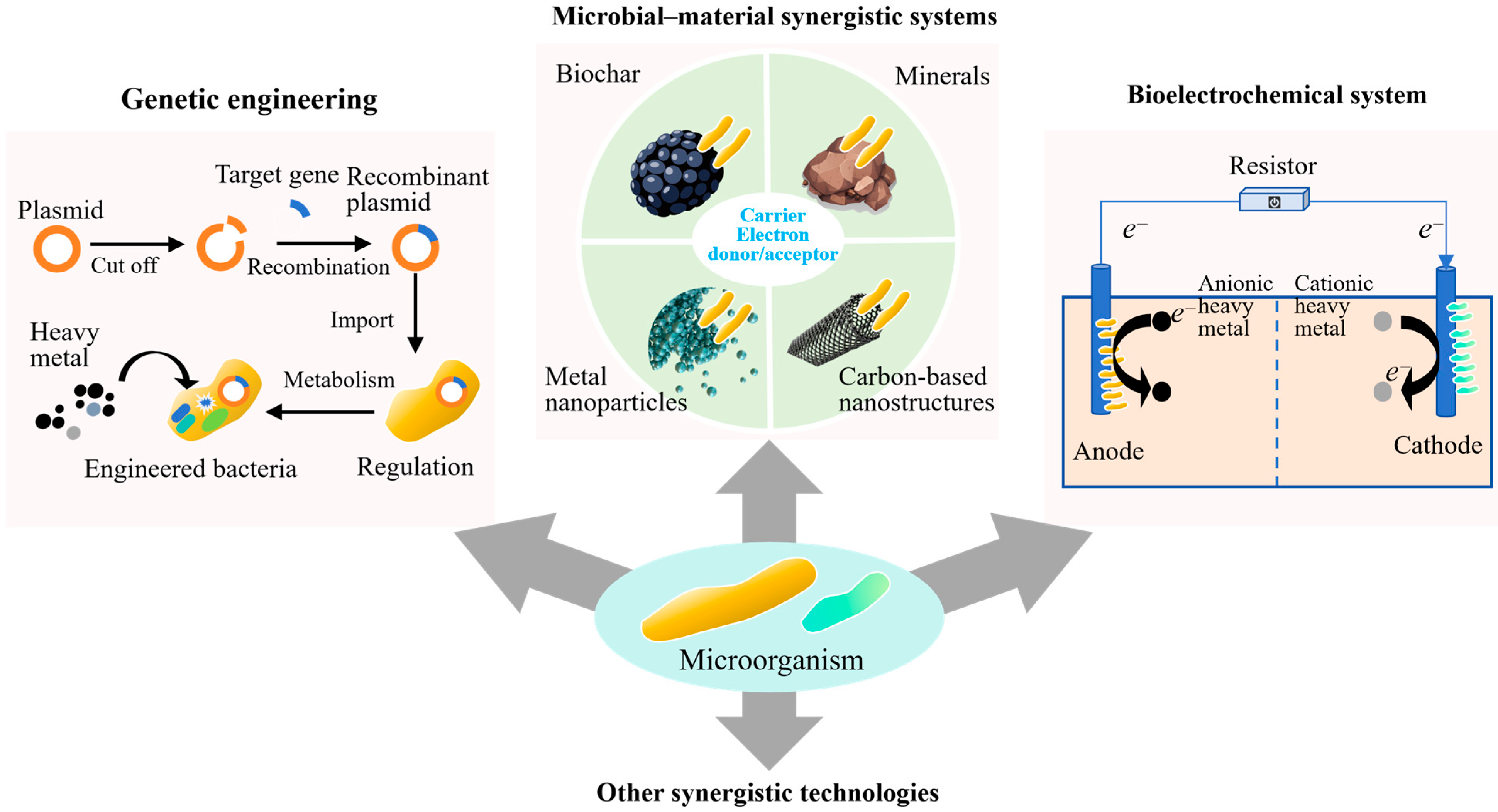 - Microorganisms remove or immobilize heavy metals through coordinated processes through cell-surface functional groups, novel metal-binding compounds such as phosphomelanin, and electron-transfer networks. Horizontal transfer of metal-resistance and detoxification genes, together with environmental factor (such as root exudate)-mediated selection and regulation of metal-tolerant microbial consortia, constructs a collaborative ecological network.