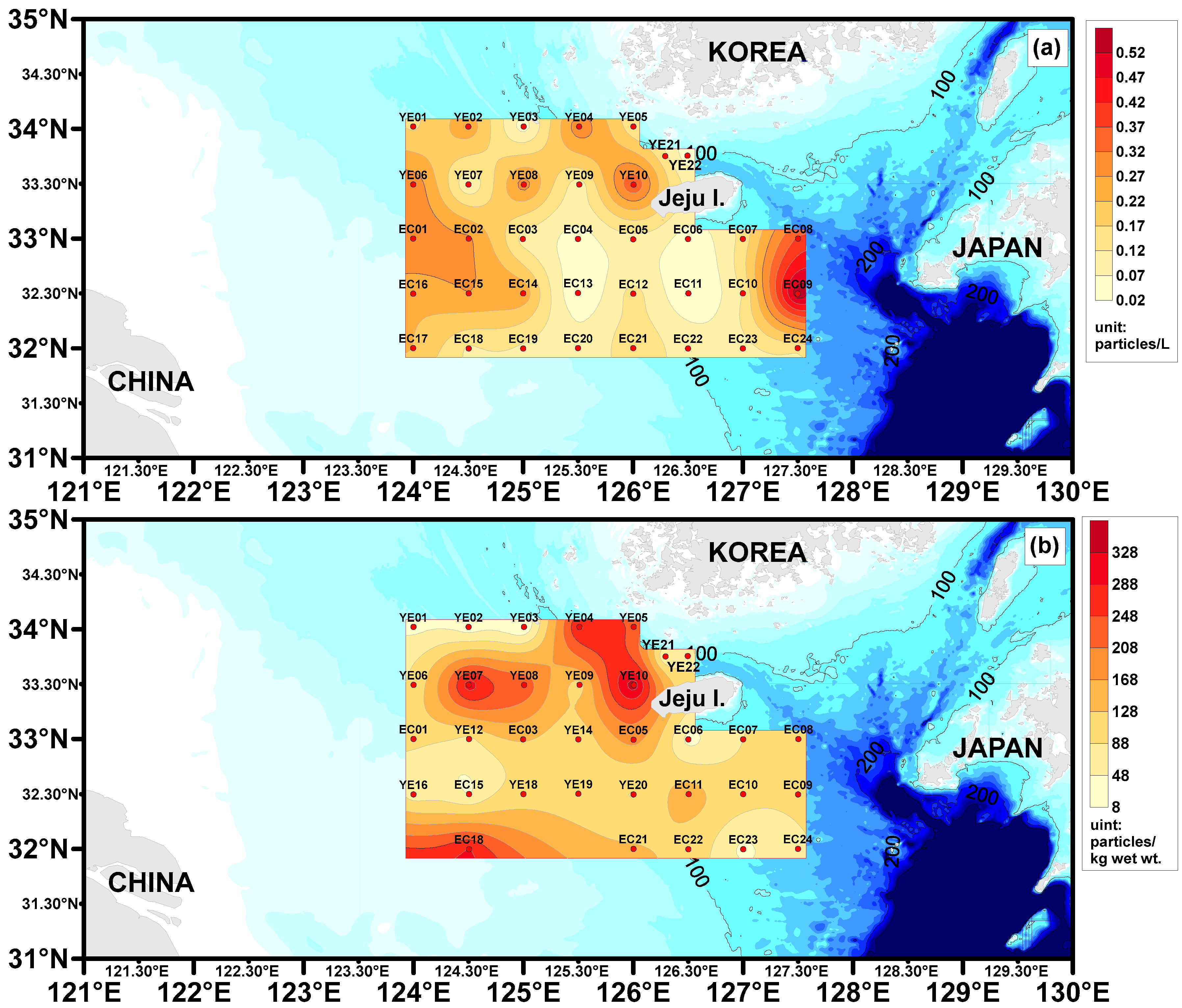 Microplastic Distribution and Transport Mechanisms in the South Sea and East China Sea of Korea