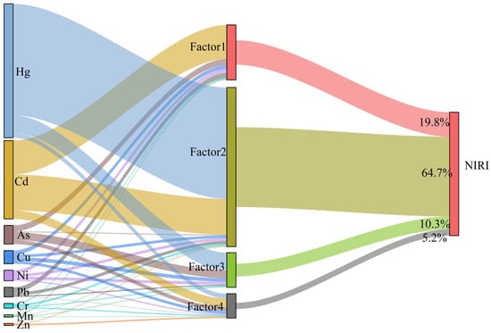 Relationship between soil HMs, their source factors, and NIRI.