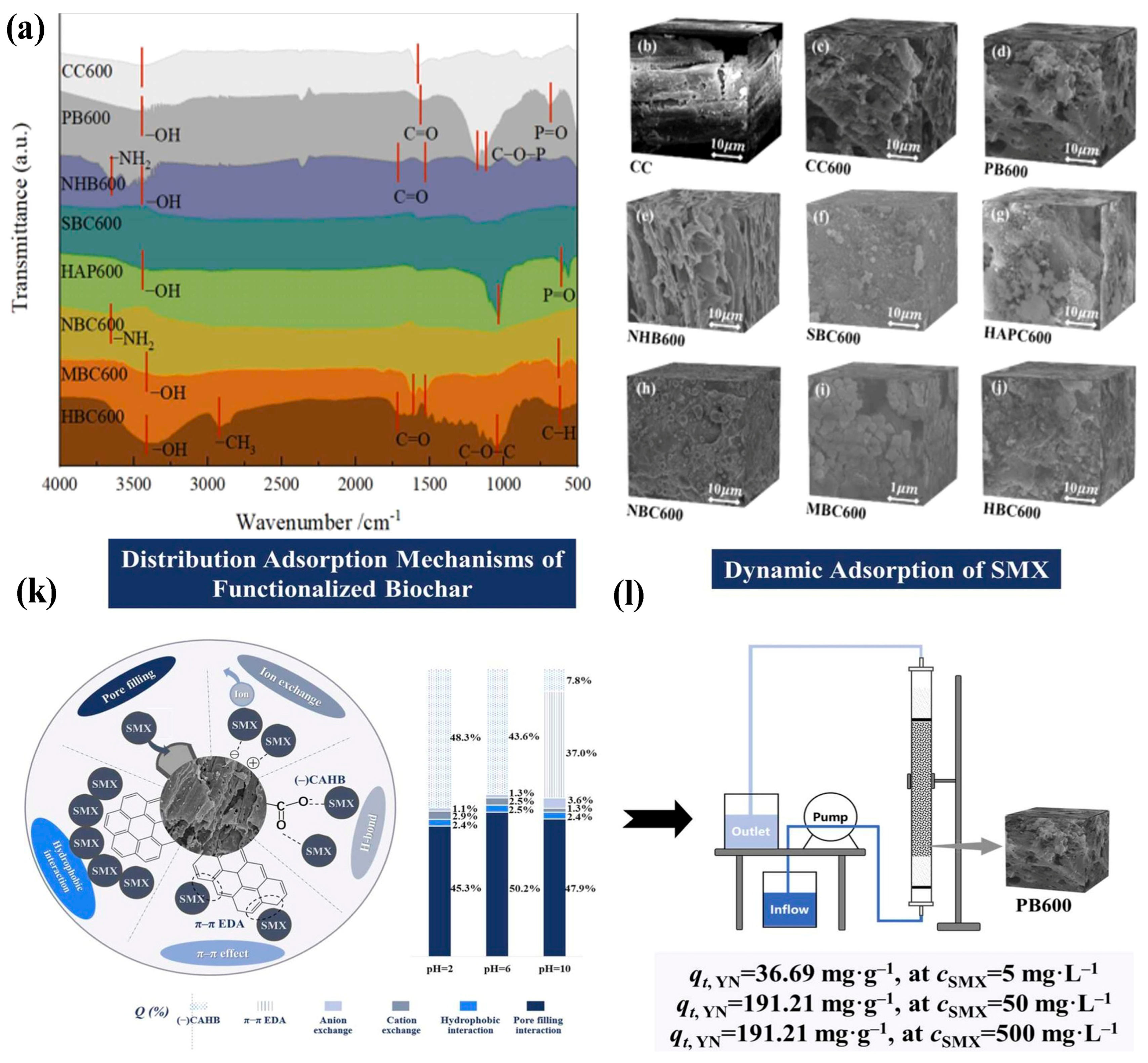 - Li, Y.; Cheng, Z.; Shang, H.; Chen, Y.; Li, S.; Wei, X.; Wang, T.; Zhou, W.; Yu, Y. Design of functional groups on biochar for sulfamethoxazole adsorption from adsorption efficiency and adsorption mechanism. J. Environ. Chem. Eng. 2025, 13, 116874. [Google Scholar] [CrossRef]