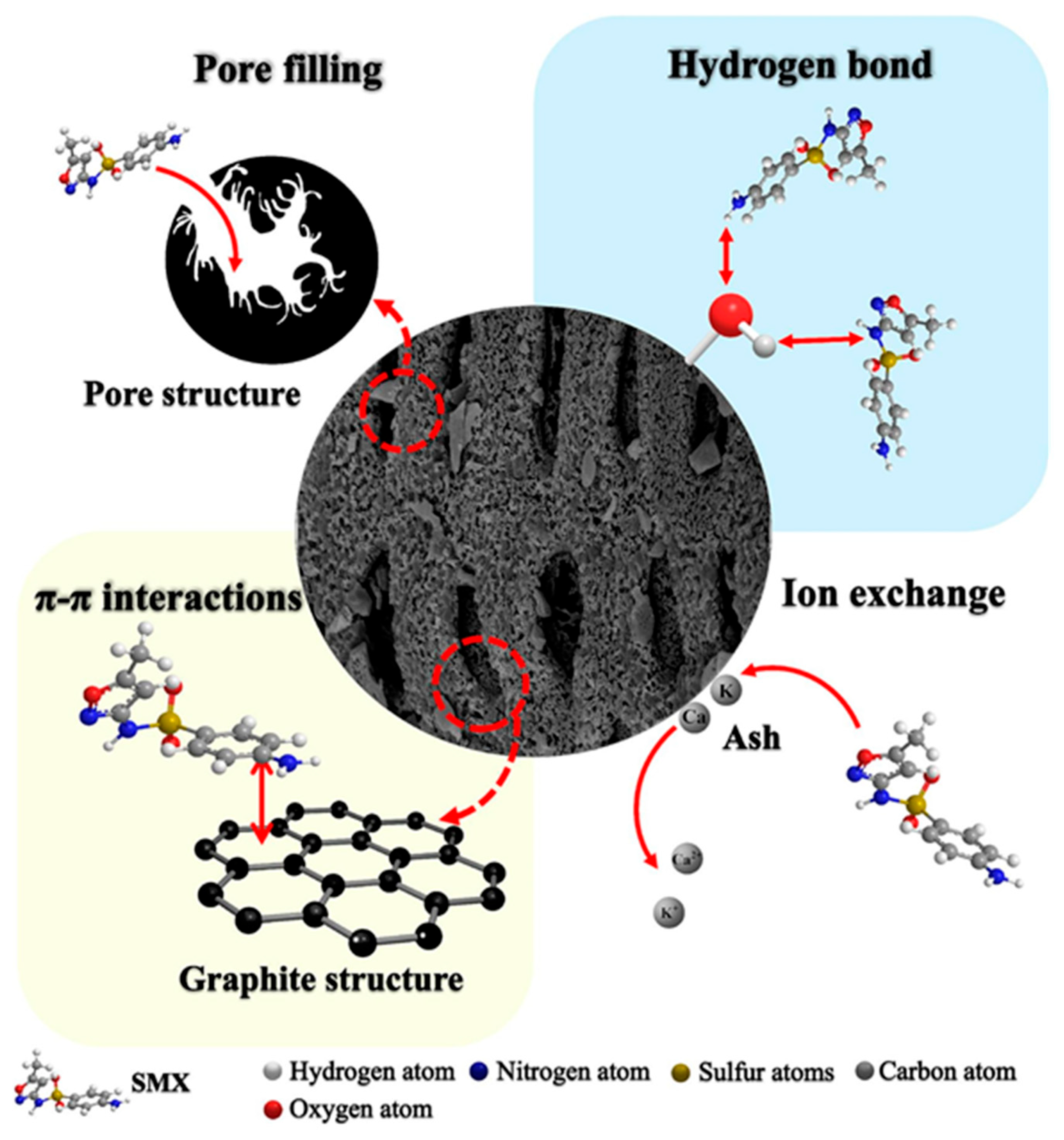 - Tan, X.; Wei, H.; Zhou, Y.; Zhang, C.; Ho, S.-H. Adsorption of sulfamethoxazole via biochar: The key role of characteristic components derived from different growth stage of microalgae. Environ. Res. 2022, 210, 112965. [Google Scholar] [CrossRef]