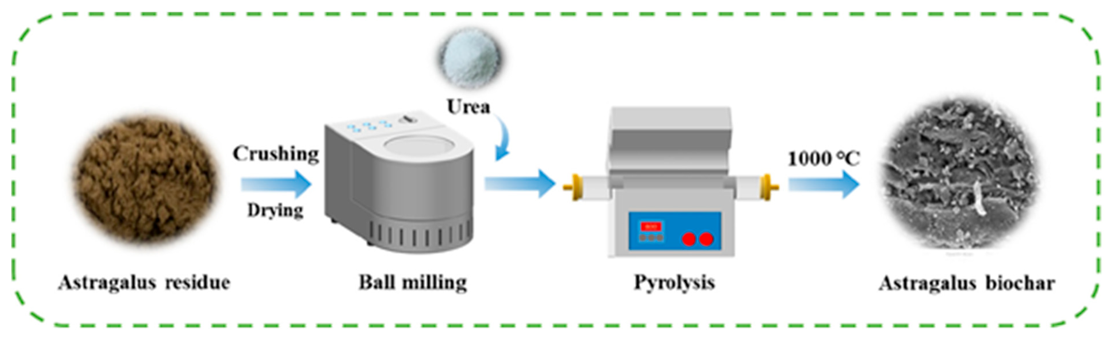 - Zhang, M.; Guo, D.; Zhao, Z.; Li, P.; Su, H.; Feng, W.; Zhang, Z. Enhancing norfloxacin removal from water using nitrogen-doped biochar synthesized via solvent-free ball milling. J. Water Process. Eng. 2025, 71, 107256. [Google Scholar] [CrossRef]