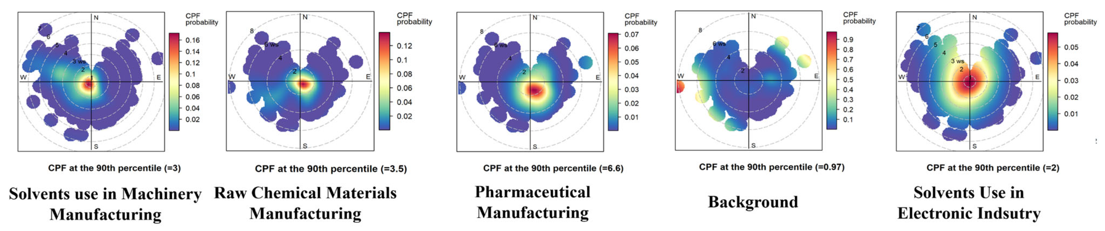 3.2. Emission Source Profiles and Potential Sources Regions of Halocarbons