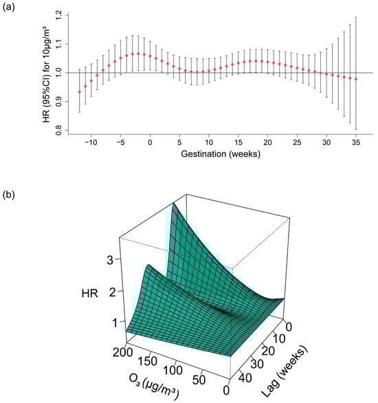3.3. Critical Windows of Weekly O3 Exposure for GDM Risks