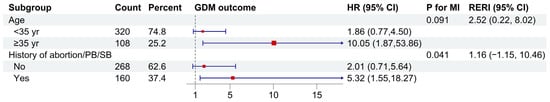 3.4. Interaction Between High O3 Exposure During Different Periods and Maternal Characteristics on GDM Risks
