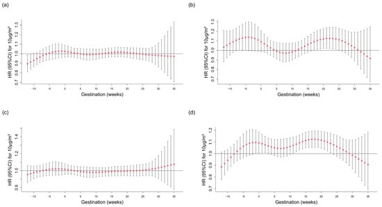 - Lv, X.; Lin, G.; Zhang, Y.; Yuan, K.; Liang, T.; Liu, R.; Du, Y.; Yu, H.; Sun, S. Weekly-Specific Ambient PM1 Before and During Pregnancy and the Risk of Gestational Diabetes Mellitus. Ecotoxicol. Environ. Saf. 2024, 284, 117006. [Google Scholar] [CrossRef]