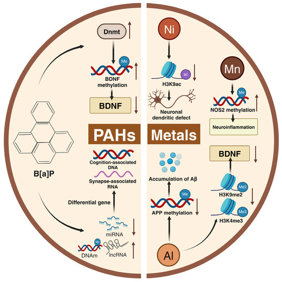 - Li, Y.; Cao, J.; Hao, Z.; Liu, A.; Li, X.; Li, H.; Xia, N.; Wang, Z.; Zhang, Z.; Bai, J.; et al. Aspirin ameliorates the cognition impairment in mice following benzo[a]pyrene treatment via down-regulating BDNF IV methylation. Neurotoxicology 2022, 89, 20–30. [Google Scholar] [CrossRef]