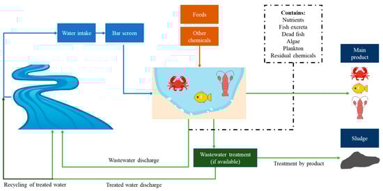 A simple diagram of aquaculture production, referring to pond systems, is depicted in Figure 2.
