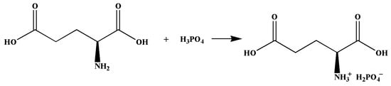 The preparation of [Glu][H2PO4] was conducted in accordance with the methodologies described in references (Scheme 1) []. Glutamate and phosphoric acid was mixed and stirred evenly according to the molar ratio of 1:1, fully reacted for 2 h, and then the liquid was transferred to a round-bottomed flask and distilled under pressure with a rotary evaporator at room temperature to finally obtain [Glu][H2PO4].