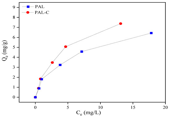 The isotherm adsorption of Cd on palygorskite (PAL) and modified palygorskite (PAL−C).