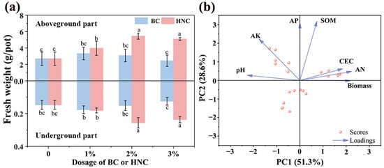 | 1% BC | 8.8 ± 0.1a | 43 ± 2c | 19 ± 1 c | 40 ± 1a | 30 ± 1c | 489 ± 13c |