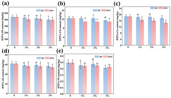 3.3. Effect of BC and HNC on Bioavailable HMs in Soil