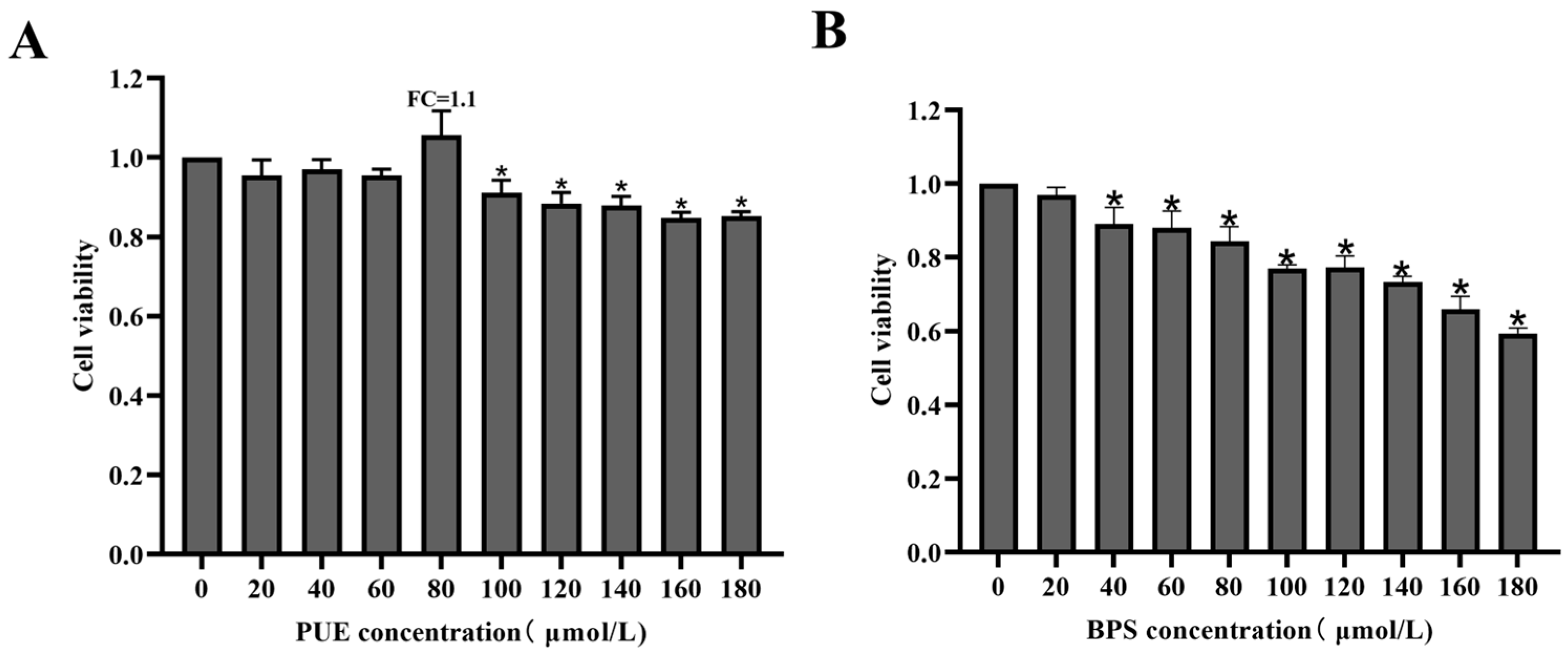 APA StyleQin, M., Guo, X., Xu, N., Su, Y., Pan, M., Zhang, Z., & Zeng, H. (2025). Puerarin Attenuates the Cytotoxicity Effects of Bisphenol S in HT22 Cells by Regulating the BDNF/TrkB/CREB Signaling Pathway. Toxics, 13(3), 162. https://doi.org/10.3390/toxics13030162