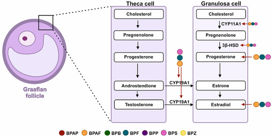- Shoorei, H.; Seify, M.; Talebi, S.F.; Majidpoor, J.; Dehaghi, Y.K.; Shokoohi, M. Different types of bisphenols alter ovarian steroidogenesis: Special attention to BPA. Heliyon 2023, 9, e16848. [Google Scholar] [CrossRef] [PubMed] [PubMed Central]