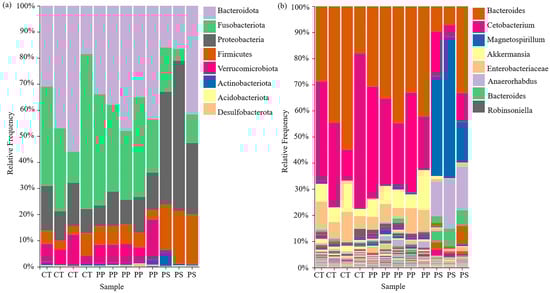 4.3. PS Exposure Induced Dysregulation of Intestinal Microbiota of Tadpoles