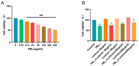 3.1. Lentinan Reversed the PM2.5-Induced Decrease in Cell Activity