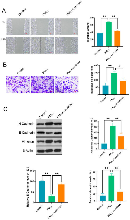 Wang, Z.; Xu, S.; Bian, B.; Hu, Z.; Wu, F.; Zhao, S.; Wang, X.; Wang, L.; Ma, T. Lentinan Alleviated PM2.5 Exposure-Induced Epithelial–Mesenchymal Transition in Pulmonary Epithelial Cells by Inhibiting the GARP/TGF-β/Smad Pathway. Toxics 2025, 13, 166. https://doi.org/10.3390/toxics13030166