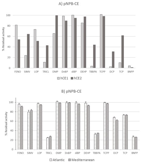 - Sole, M.; Freitas, R.; Rivera-Ingraham, G. The use of an in vitro approach to assess marine invertebrate carboxylesterase responses to chemicals of environmental concern. Environ. Toxicol. Pharmacol. 2021, 82, 103561. [Google Scholar] [CrossRef]