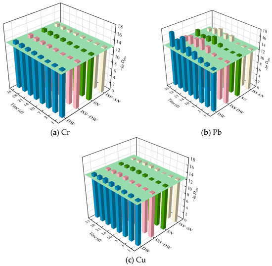 −lnDobs of (a) Cr, (b) Pb, and (c) Cu.